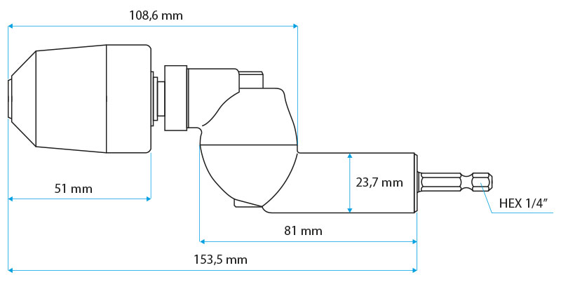 - uniwersalne mocowanie 1/4” HEX (DIN 3126 Form D6.3)