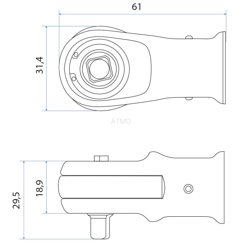 Klucz zapadkowy mini z trzpieniem 1/4" o mocy 27 Nm.