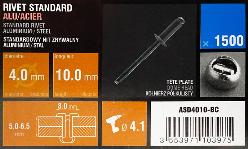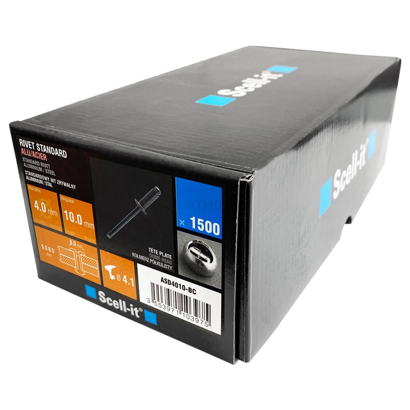 Nit zrywalny 4,0x10 otwarty-kołnierz półkulisty ALU/STAL w op. 1500szt.