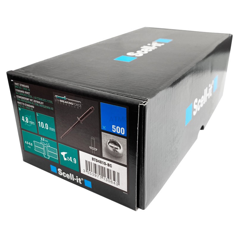 Nit zrywalny 4,8x10 otwarty z kołnierzem półkulistym STAL/STAL. W opakowaniu 500szt.
