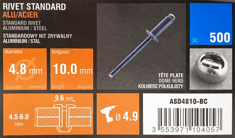 Nit zrywalny 4,8x10 otwarty-kołnierz półkulisty ALU/STAL w op. 500szt.