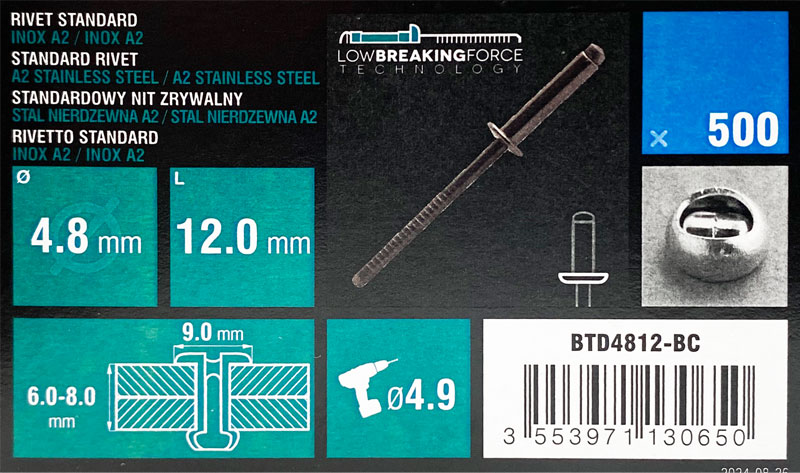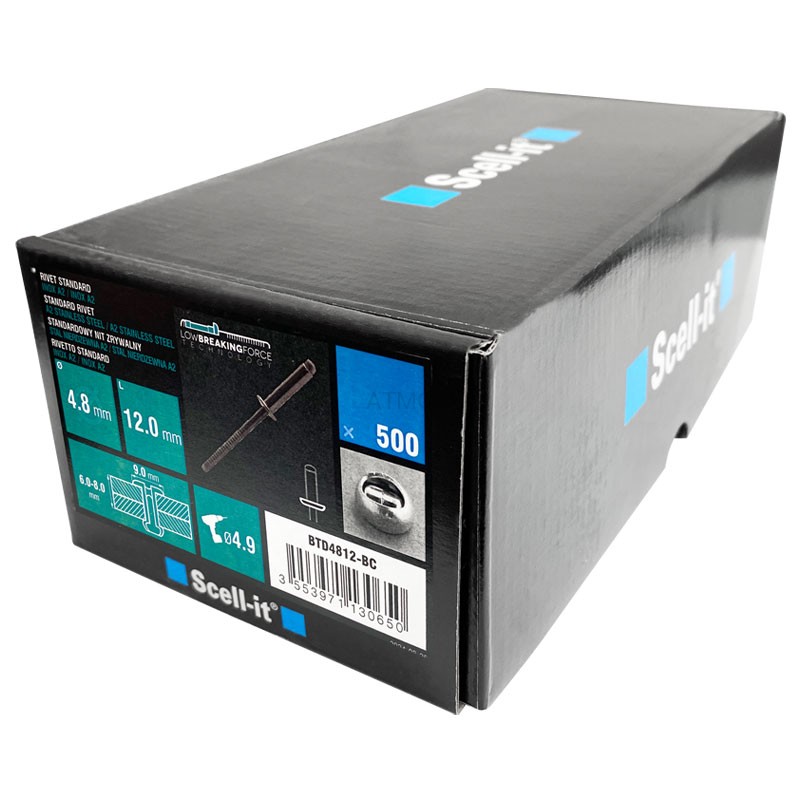 Nit zrywalny 4,8x12 otwarty-kołnierz półkul. z molet. trzp. A2/A2 w op. 500szt.