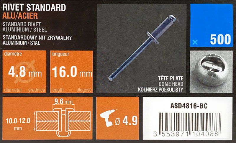 Nit zrywalny 4,8x16 otwarty-kołnierz półkulisty ALU/STAL w op. 500szt.