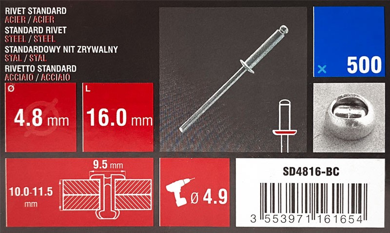Nit zrywalny 4,8x16 otwarty-kołnierz półkulisty STAL/STAL w op. 500szt.