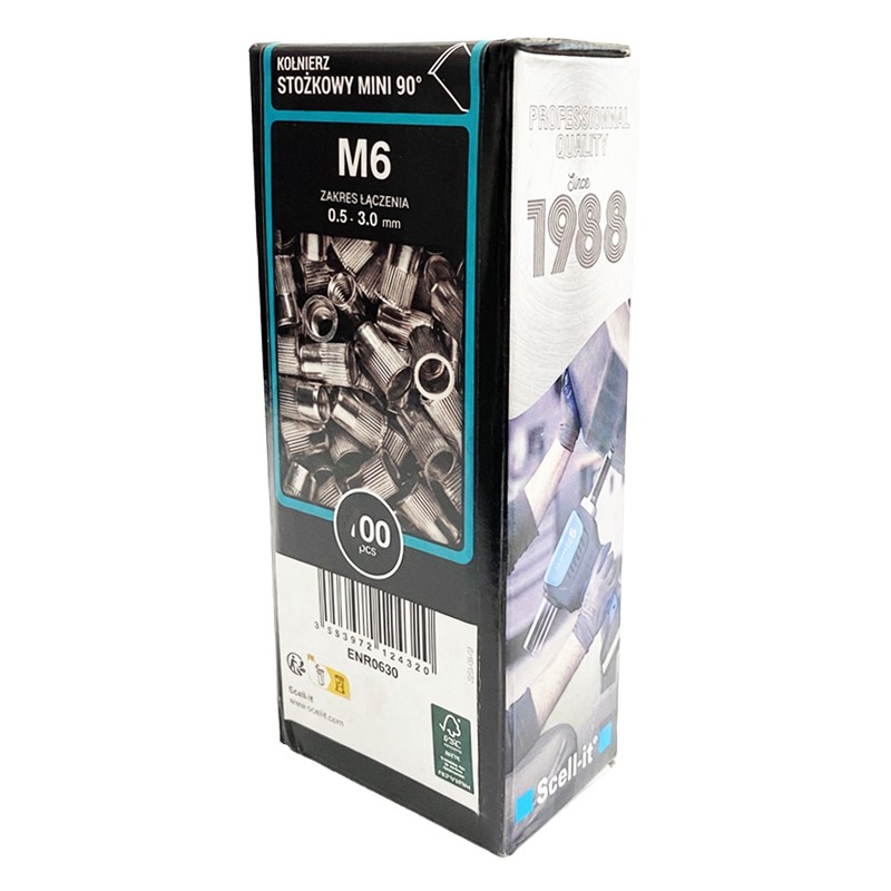 Nitonakrętka M6 moletowana-kołnierz stożkowy mini A2 w op. 200szt.