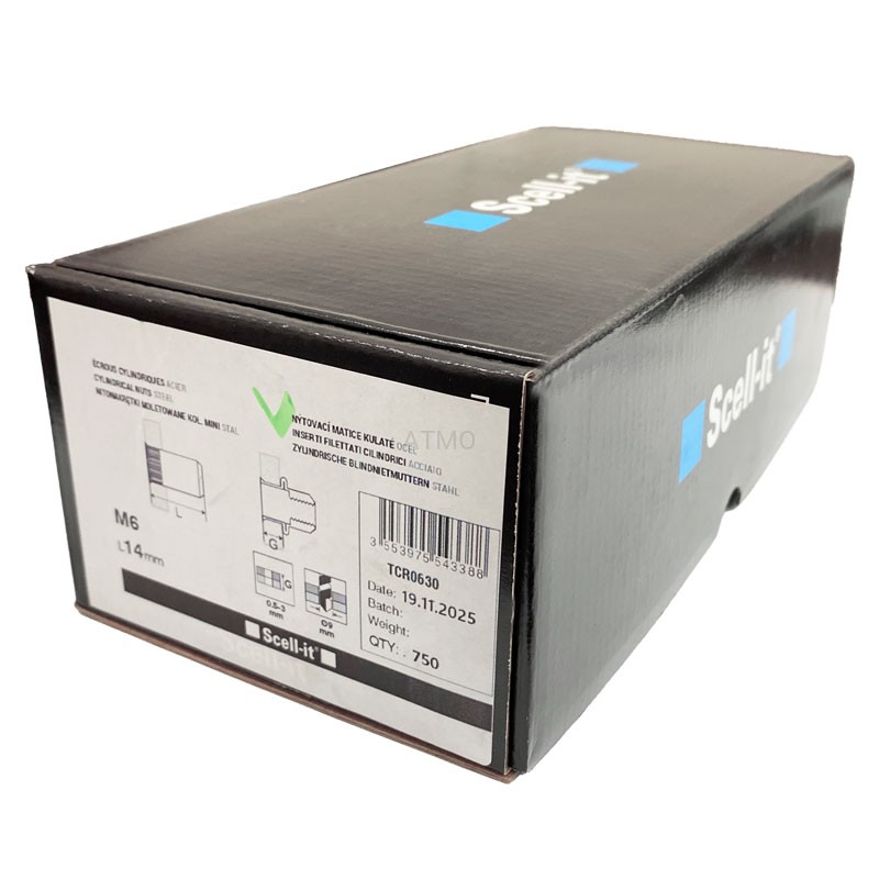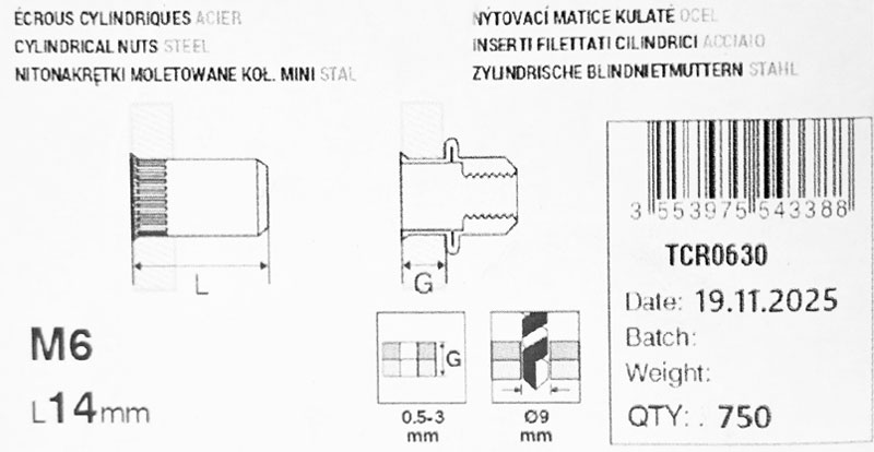 Nitonakrętka stalowa M6 moletowana z kołnierzem stożkowym mini. W opakowaniu 750szt.
