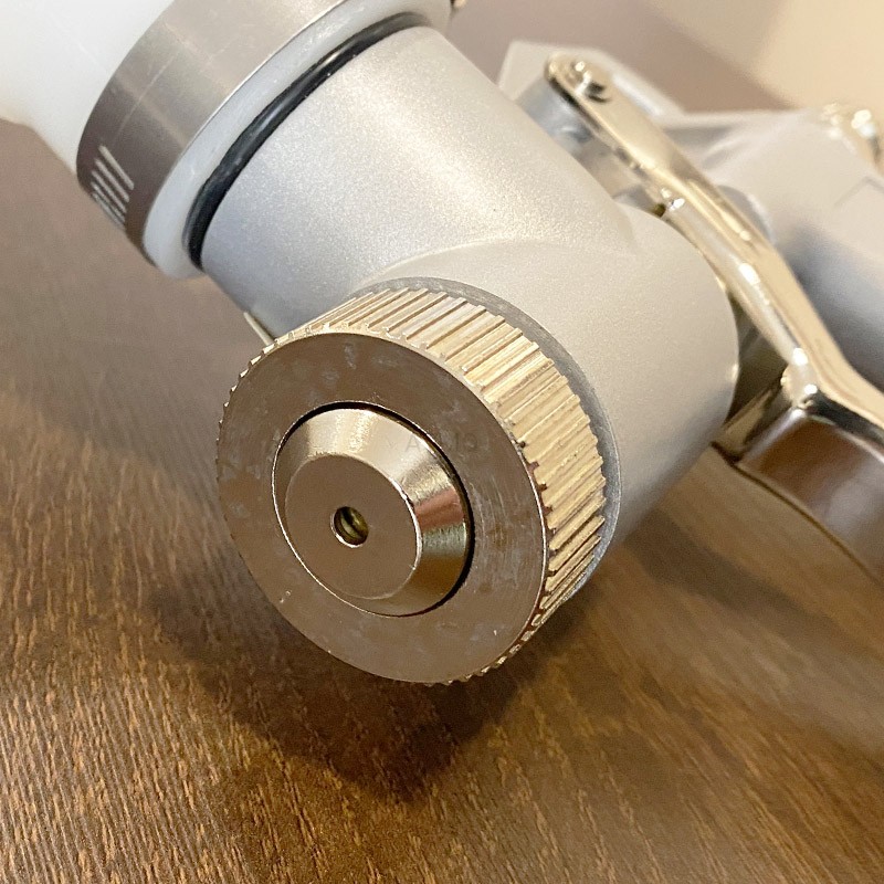 Pistolet pracuje w zakresie ciśnienia 2-3 barów, oferując optymalną kontrolę nad natryskiem, a jego średnie zużycie powietrza wynosi około 430 l/min, co gwarantuje stabilną i efektywną pracę.