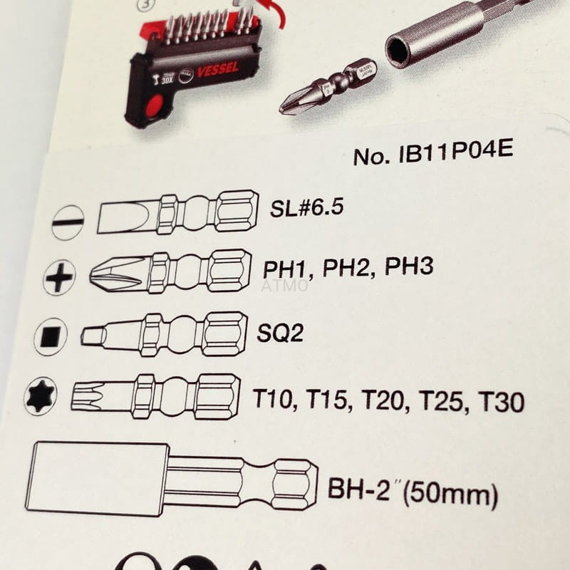 Zestaw bitów 1/4" Vessel L-Box Mini, IB11P04E, 2200 PZ2x150mm buff pod szyję
