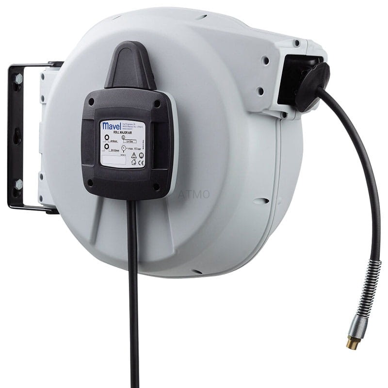 Zwijadło przewodu sprężonego powietrza Roll Major Mavel ze stalowym uchwytem bocznym do mocowania na ścianę.